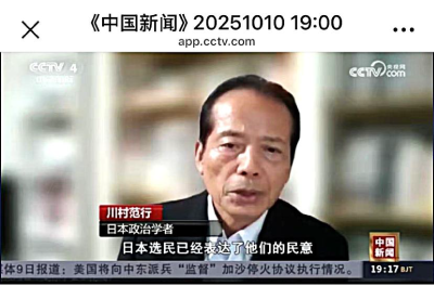 10月10日に中国国営中央電視台(CCTV)から高市早苗・自民党新総裁と政権の行方などについてインタビュー(オンラ イン)を受け、当日夜7時台のCCTV全国ニュースで約2分間、録画放送された。中国の国営放送が日本の新政権の行方 と日中関係への影響について、強い関心を示していることの表われだ。 注:インタビューはオンラインで10月10日午前10時より約40分間行われた。この日、午後に自公両党の代表者会談 が行われ、公明の斉藤代表が連立離脱を正式に表明した。インタビューの時点では連立離脱も辞さないとする公明党側 の姿勢を踏まえて回答をした。以下はインタビューの詳細を記す。